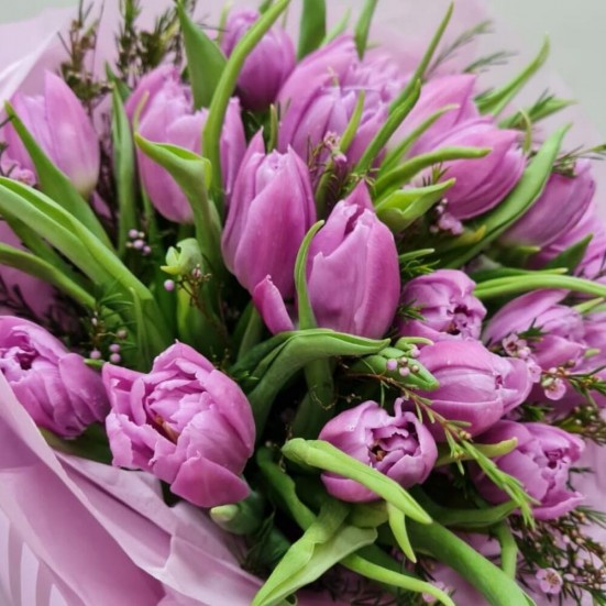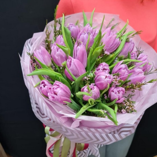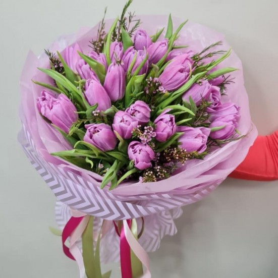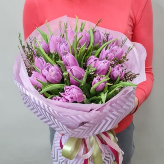 Букет «25 фиолетовых пионовидных тюльпанов»