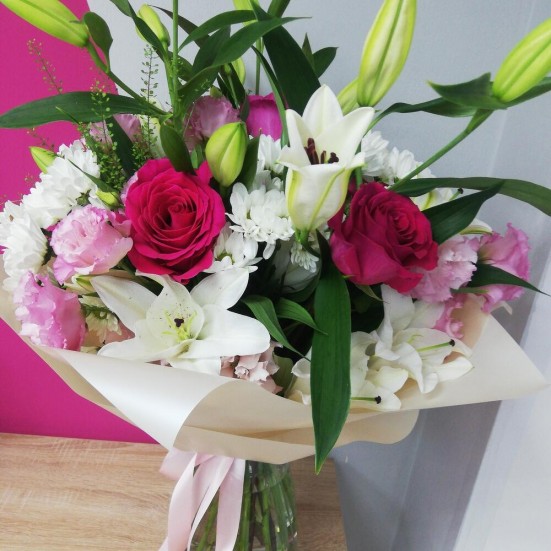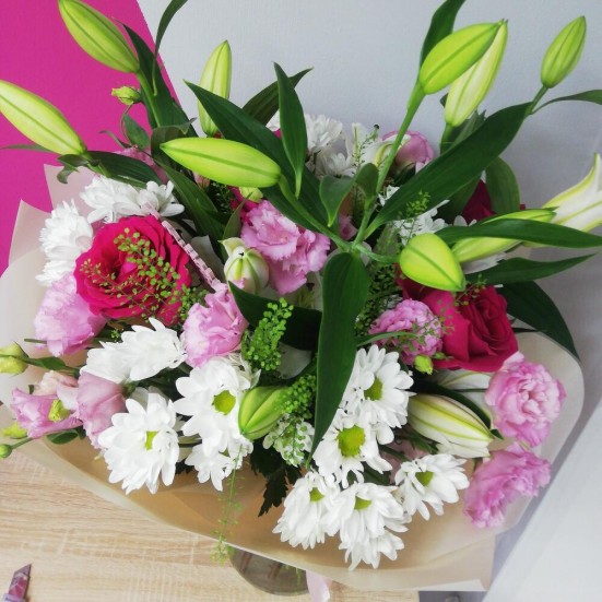 Букет «Розы, лилии  и хризантемы»