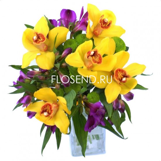 Букет желтых орхидей и альстромерий